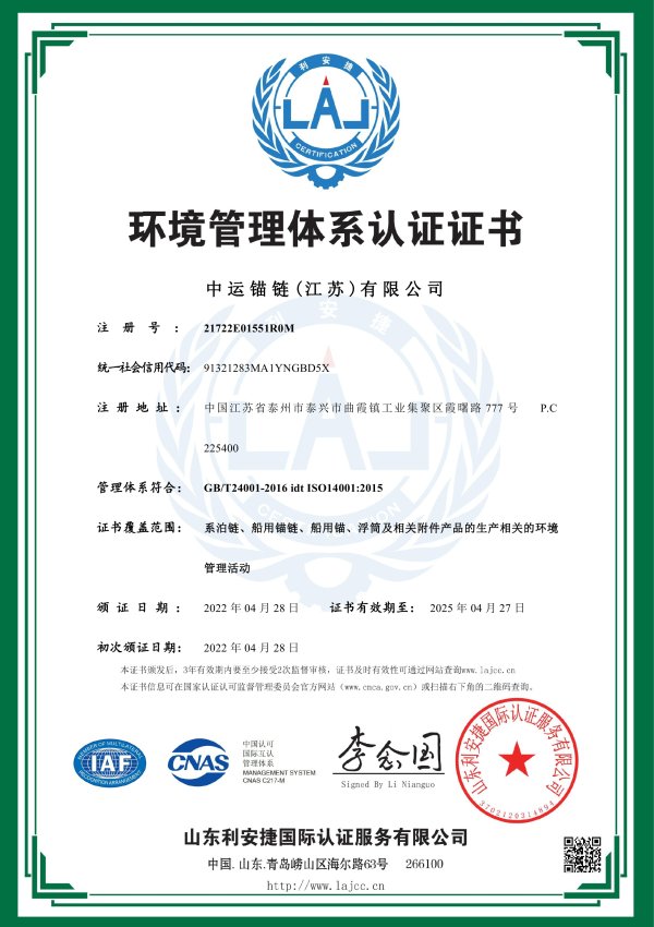 中運是全球領先的船用錨鏈、海洋系泊鏈制造及系泊系統一站式解決方案供應商,集船用錨鏈、海洋系泊鏈、船舶及海工鍛件、船舶及海工鑄造件、系泊系統等產品的研發、設計、生產、銷售、安裝于一體的大型船舶及海洋裝備制造企業。業務覆蓋船舶制造、船舶維修、深??萍肌⒑Q蠊こ獭⑸詈S蜌馄脚_、漂浮式風力發電、深海漁業養殖、深海系泊系統、軍工等領域。集團成立于2012年,隨著業務的快速發展,2019年在江蘇泰興成立中運錨鏈(江蘇)有限公司,2022年將集團總部遷至江蘇宿遷,正式成立中運海洋裝備(江蘇)股份有限公司。